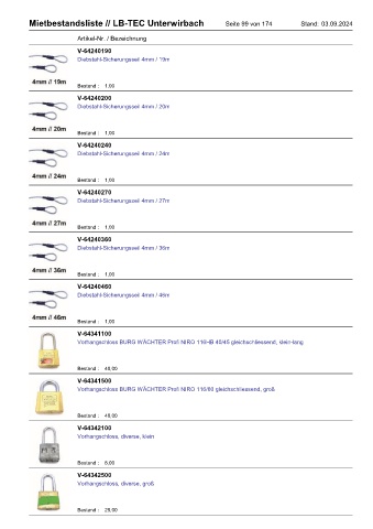 Mietbestandsliste // LB-TEC Unterwirbach Seite 99 von 174 Stand: 03.09.2024