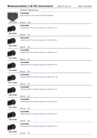 Mietbestandsliste // LB-TEC Unterwirbach Seite 161 von 174 Stand: 03.09.2024