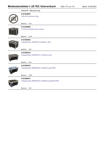 Mietbestandsliste // LB-TEC Unterwirbach Seite 174 von 174 Stand: 03.09.2024