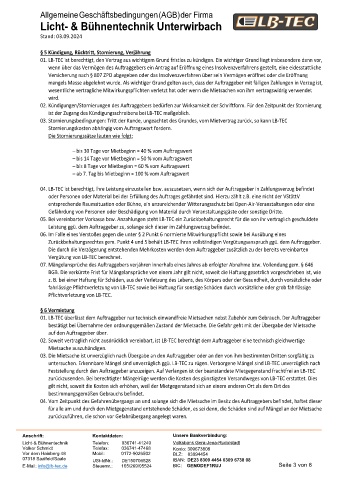 03. Stornierungsbedingungen: Tritt der Kunde, ungeachtet des Grundes, vom Mietvertrag zurück, so kann LB-TEC
