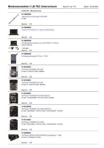 Mietbestandsliste // LB-TEC Unterwirbach Seite 21 von 174 Stand: 03.09.2024