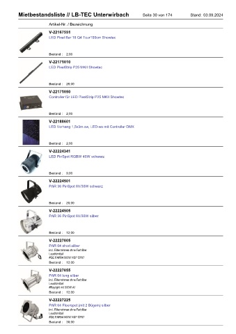 Mietbestandsliste // LB-TEC Unterwirbach Seite 30 von 174 Stand: 03.09.2024