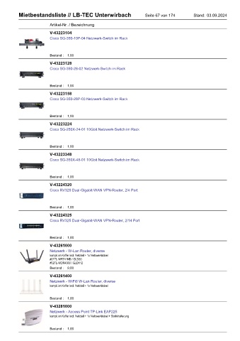 Mietbestandsliste // LB-TEC Unterwirbach Seite 67 von 174 Stand: 03.09.2024