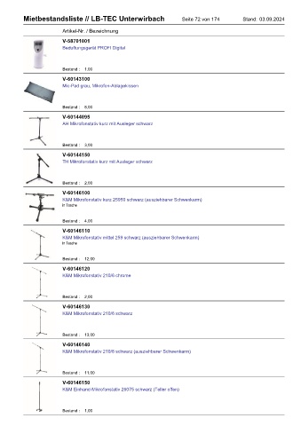 Mietbestandsliste // LB-TEC Unterwirbach Seite 72 von 174 Stand: 03.09.2024