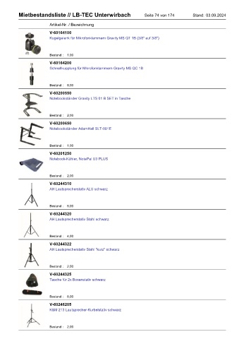 Mietbestandsliste // LB-TEC Unterwirbach Seite 74 von 174 Stand: 03.09.2024